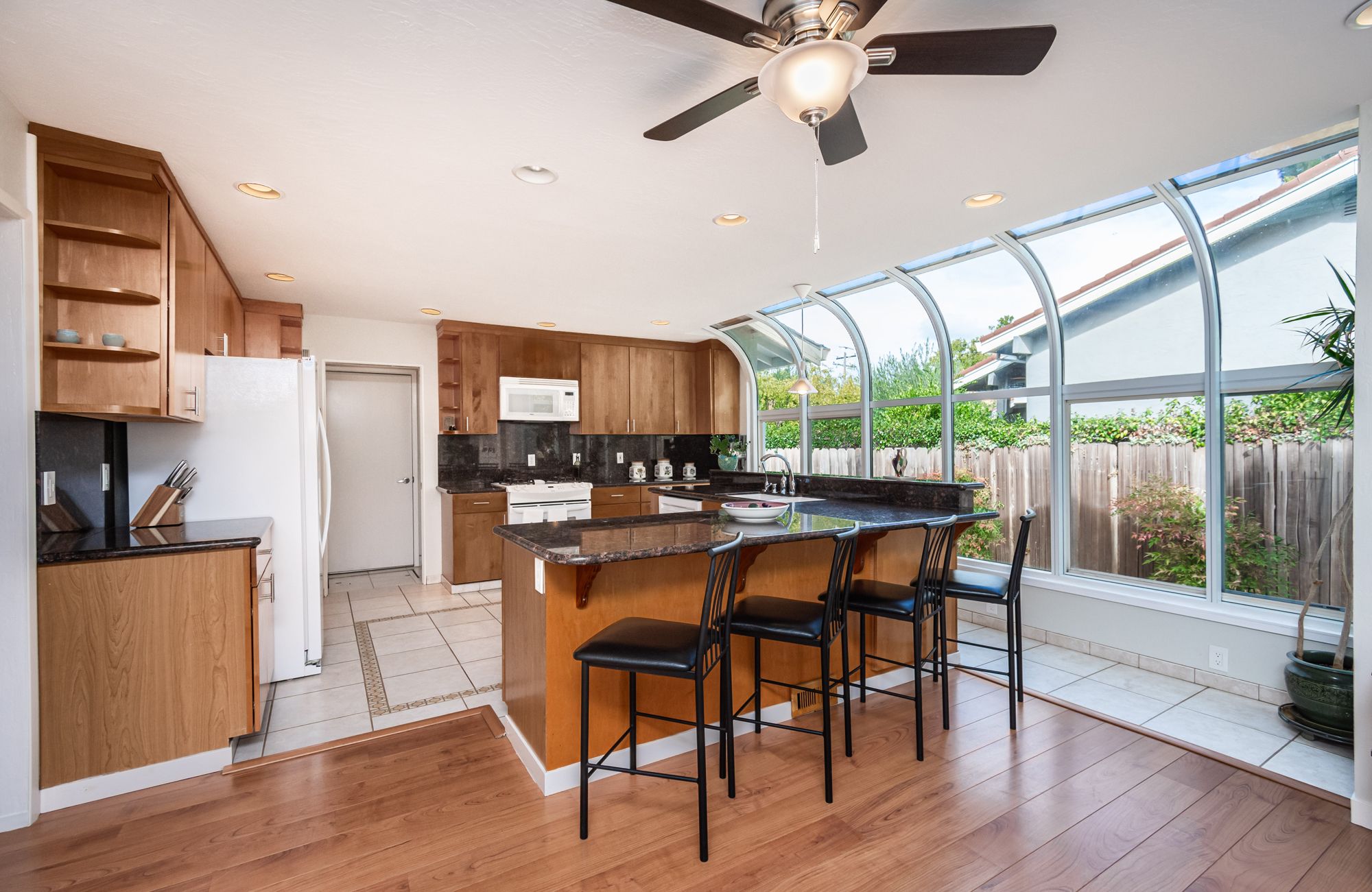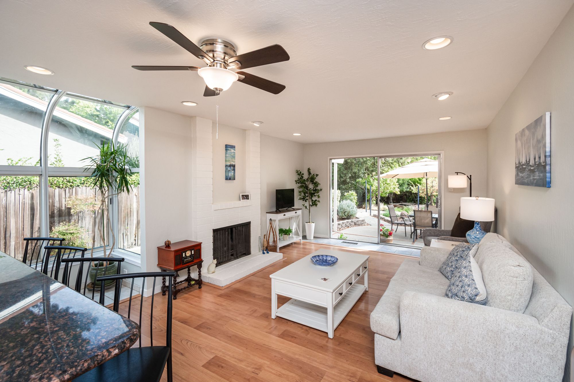 A private courtyard with a fountain is a warm place to welcome your friends and family. Inside you’ll find wood floors, formal living room with a cozy fireplace and large windows that fill the home with natural light. The tastefully updated bathrooms and open-concept kitchen with a huge sunroom picture window— seamlessly connected to the inviting family room — make everyday living and entertaining a joy.
